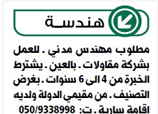 وظائف مهندس مدني. 00971568544051 موبايل واتساب. يفضل وجود خبرة سابقة فى مجال مهندس مدني. المسممطلوب مهندس مدني معتمد من بلدية دبي g 1 أو g 2 للتواصل على الرقم اتصال حصرا موبايل. العمل عن كثب مع مديري.