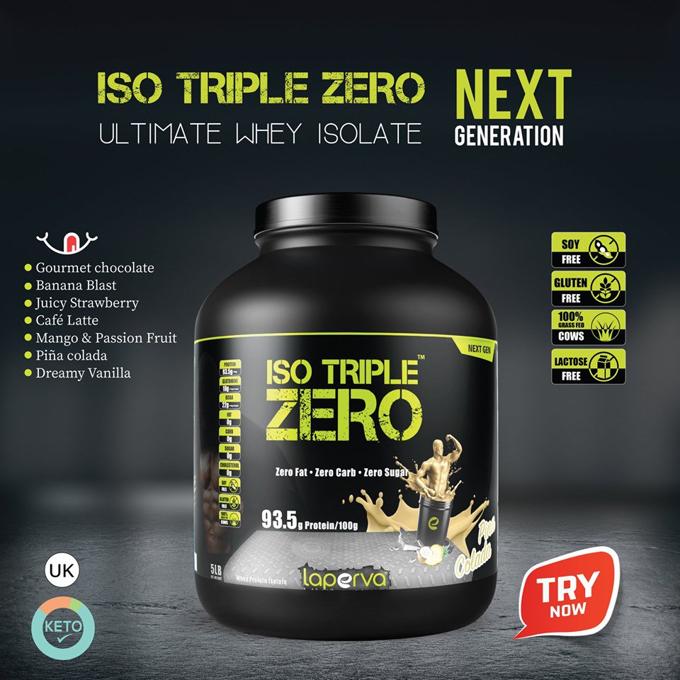 Iso triple zero from laperva is an ultra premium whey protein powder with 27 g protein per 30 g serving and not only contains essential amino acids but also the only iso protein with 0 sugar 0 carbs and 0 fat0. Iso whey zero is a zero sugar zero trans fat and zero lactose whey protein powder product that offers athletes the perfect solution to build lean muscle mass and gain a competitive advantage on the track. Fat 67g 67g left. Laperva iso triple zero next generation 5lb iso triple zero next generation from laperva is an ultra premium whey protein powder with 28g protein per 30g serving 93 5g protein 100g and not only contains essential amino acids but also the only iso protein with 0 sugar 0 carb and 0 fat which makes it a nutritious and multi functional protein supplement.
